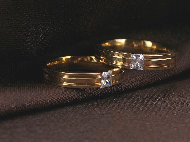18k aranyozott gyűrű 316L acél karikagyűrű CZ kristály