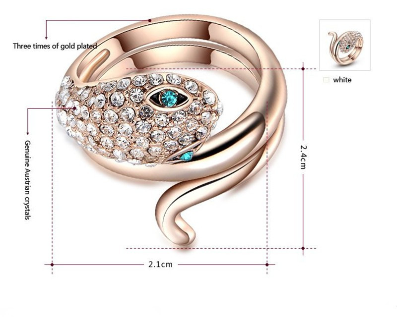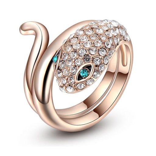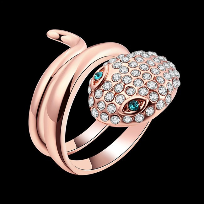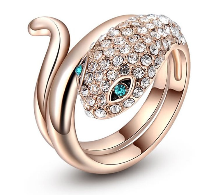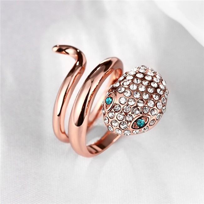 Rózsaaranyozott Austria CZ kristály, kigyó alakú gyűrű