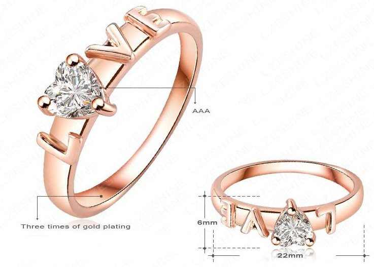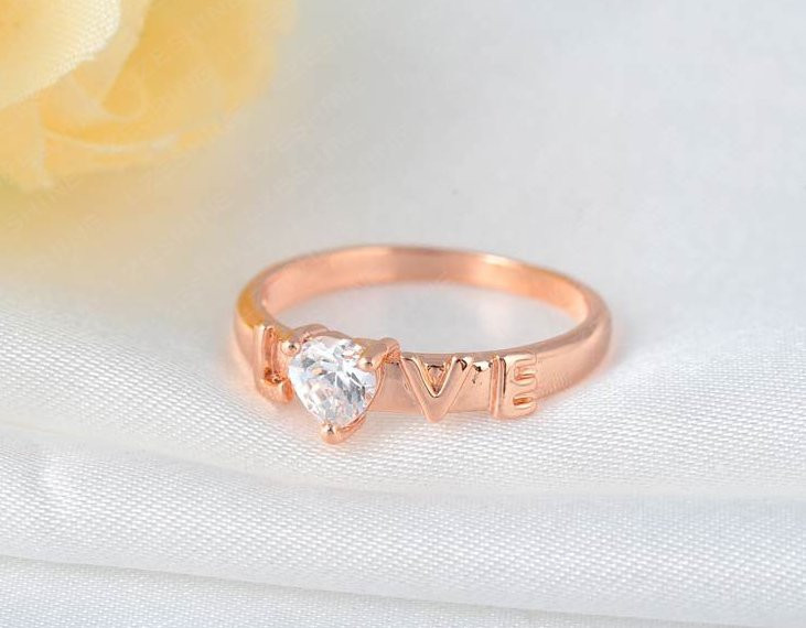 18k rózsa aranyozott gyűrű LOVE mintás CZ kristály gyűrű Valentin napra!