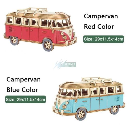 3D Model Fa Puzzle Ikonikus Volkswagen lakókocsi!