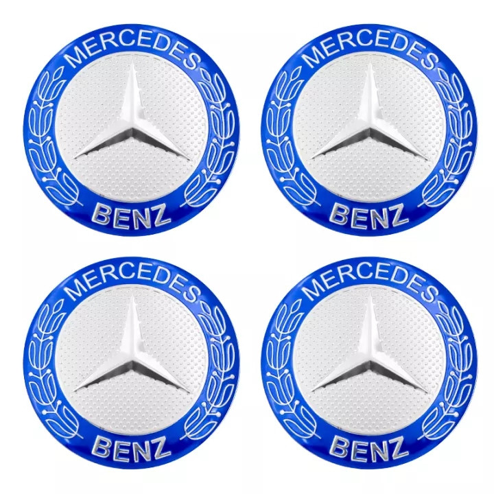 3D autó Mercedes ezüst-kék felniközép kupak matrica (4 db) 56 mm, alumínium