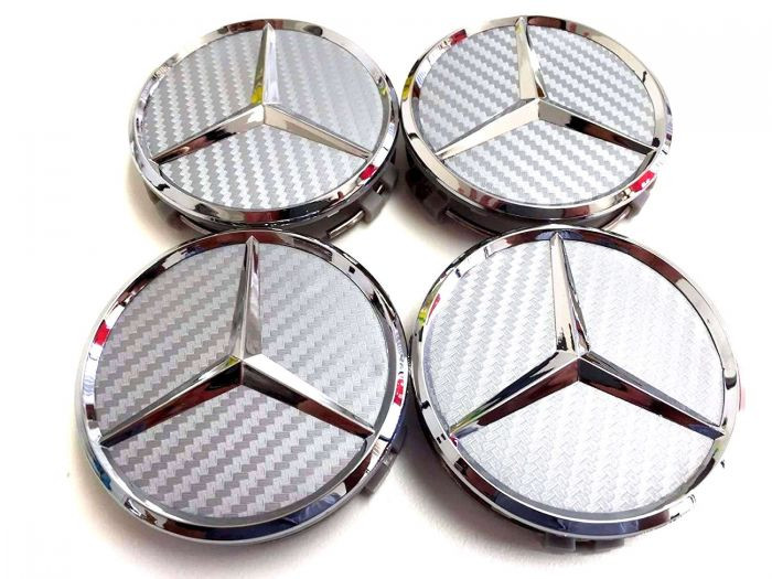 3D autó Mercedes felniközép 75 mm, kupak (4 db) ABS, alumínium carbon mintás, 4 db-os szett