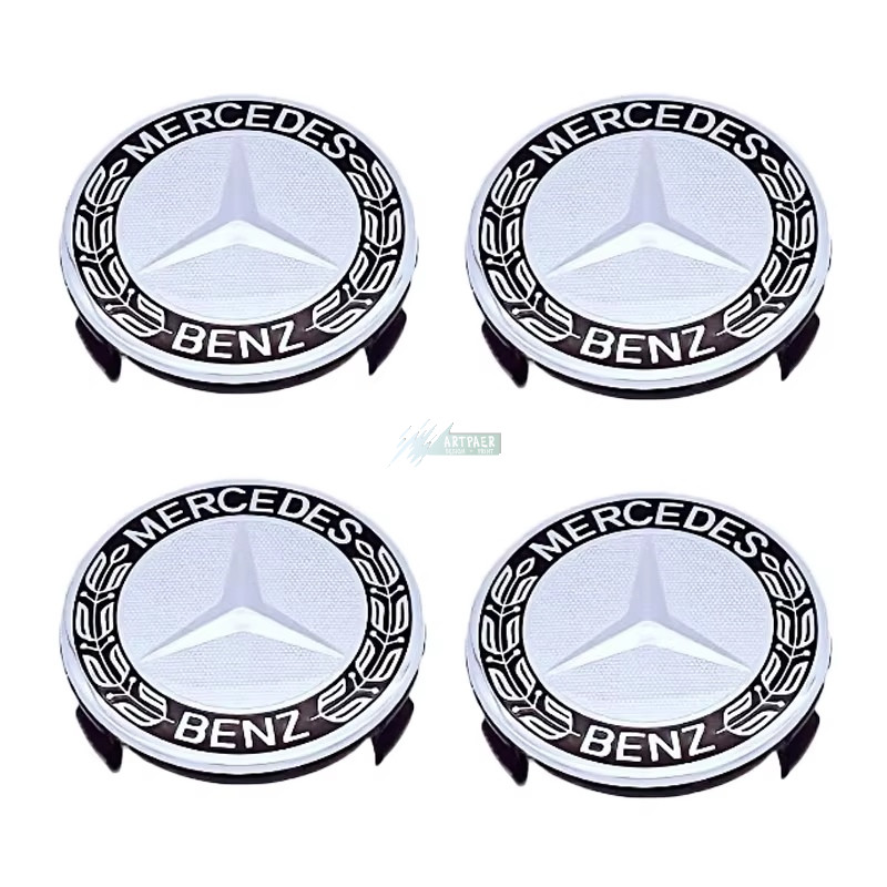 3D autó Mercedes fekete felniközép 75 mm, kupak ABS, alumínium fekete, 4 db-os szett