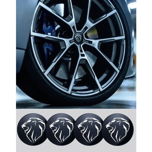 3D autó Peugeot fekete felniközép kupak matrica (4 db) 56 mm, alumínium