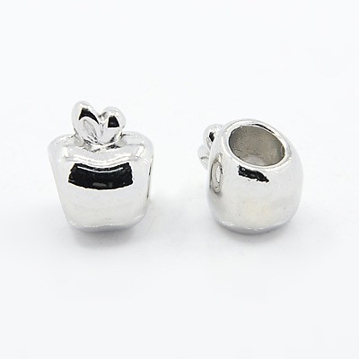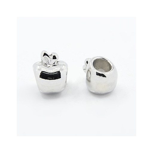 Fém, ezüst színű, alma formájú charm, pici szárral és levélkével.