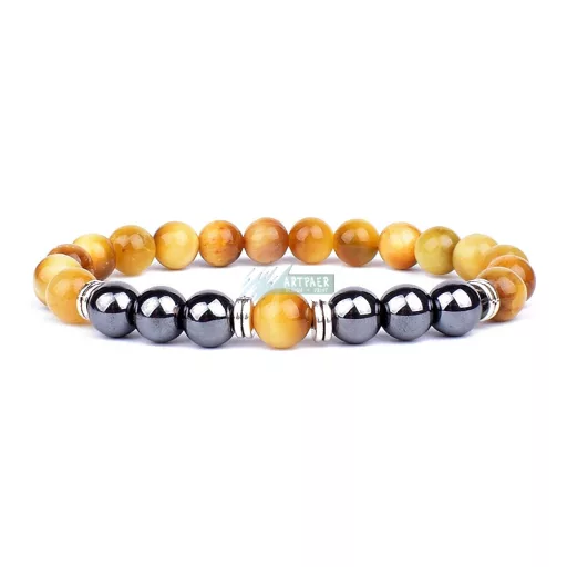 Arany tigrisszem - hematit ezüst köztes ásvány karkötő