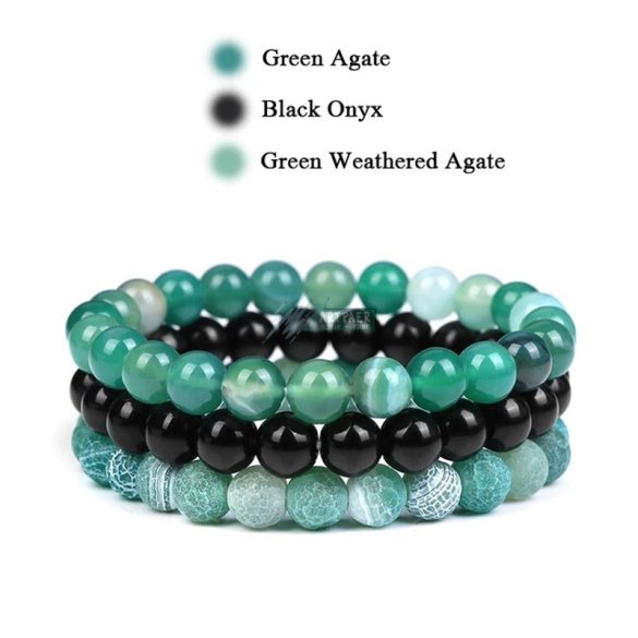 Ásvány karkötő 3-as szett Zöld csíkos Achát-Ónyx-Zöld roppantott Achát
