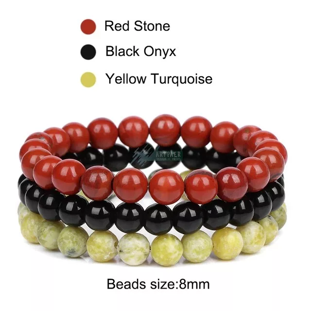 Ásvány karkötő 3-as szett vörös jáspis Onix sárga türkiz