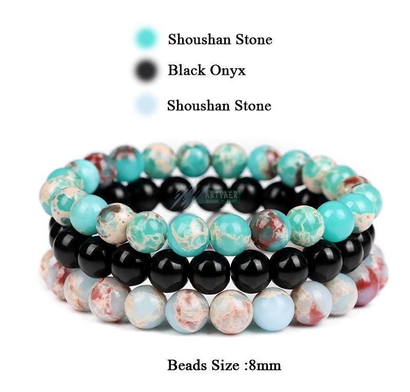 Ásvány karkötő 3-as szett türkiz Shoushan kő - ónix - kék Shoushan kő