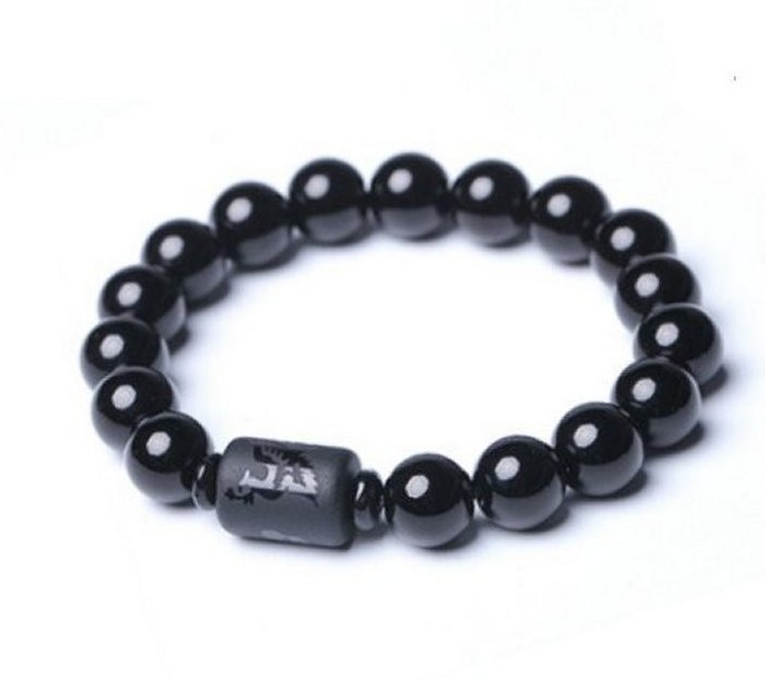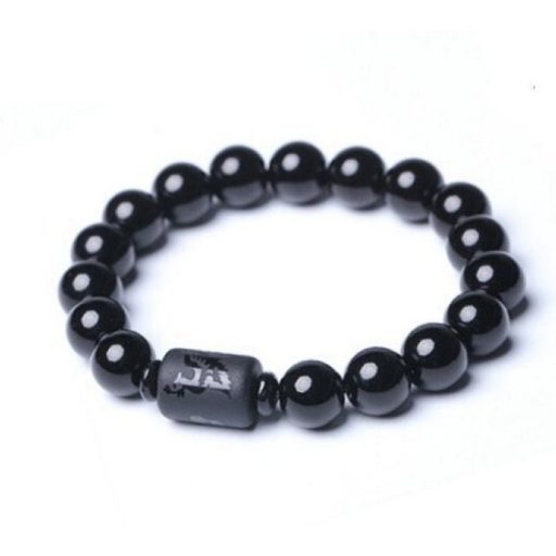 Ásvány karkötő - fekete ónix - kínai főnix avagy feng - huang mintázatú charm