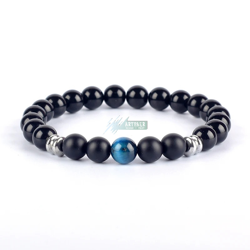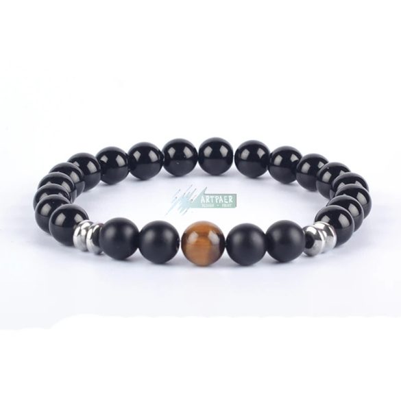 Ásvány karkötő fekete fényes és matt ónix, arany tigrisszem - aranyozott, ezüstözött vagy fekete hematit köztes