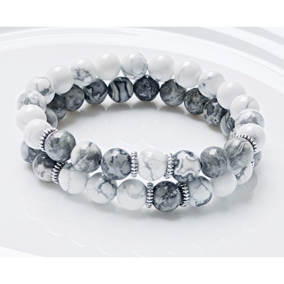 Páros ásvány karkötő howlit és térkép jáspis - ezüst színű köztes, 2 db-os szett
