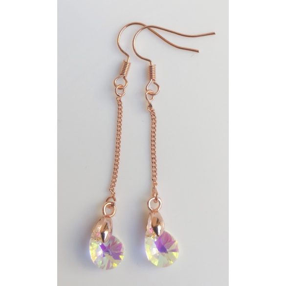 Átlátszó csepp alakú színjátszó fülbevaló rózsaarany színű akasztóval (1 pár)