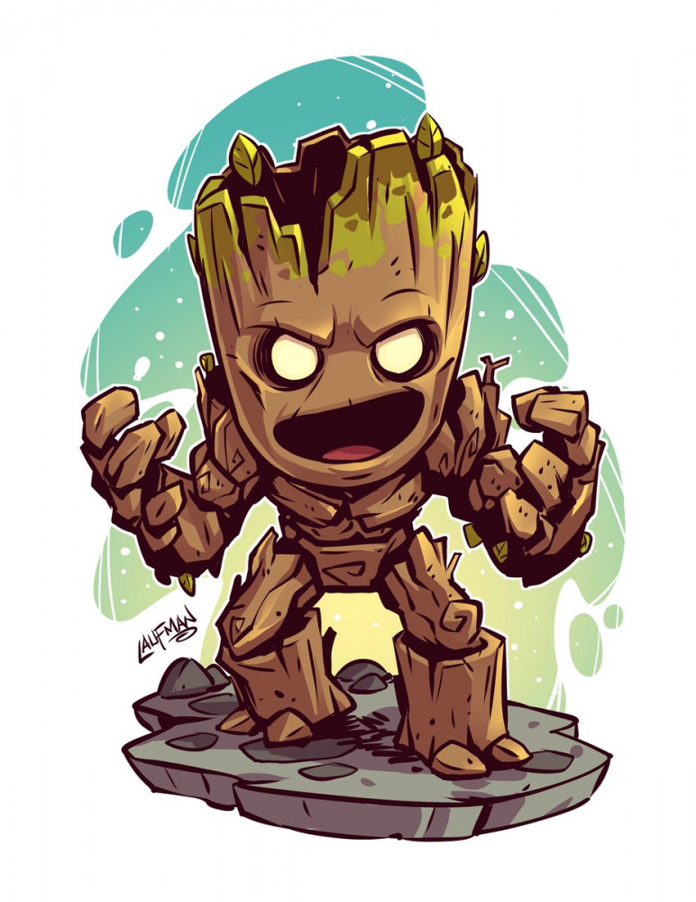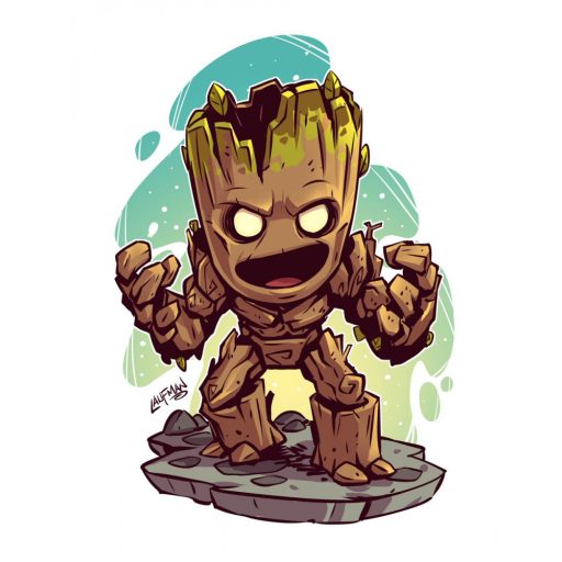 Chibi hősök, dühös Groot - Gyémánt képkirakó 40*50 cm