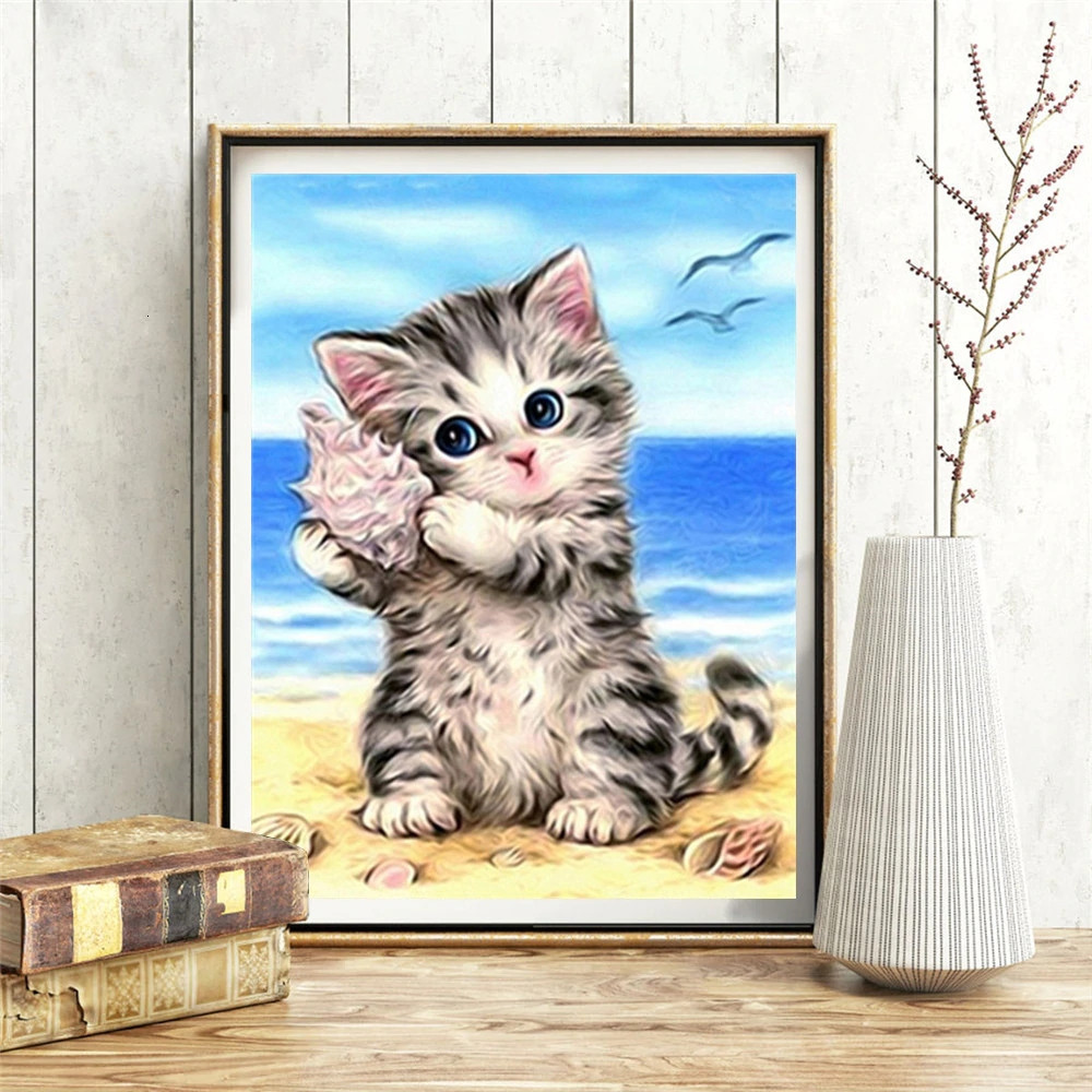 Cica a tengerparton - Gyémánt képkirakó 45*60 cm