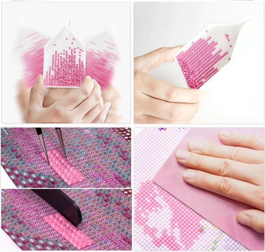 A kövek felhelyezéséhez használd a csomagban lévő speciális tollat, amelynek a végét időnként bele kell nyomni a mellékelt szilikon lapocskába, hogy a kövek rátapadjanak a tollra és ezáltal tudod áthelyezni a köveket a vászonra.