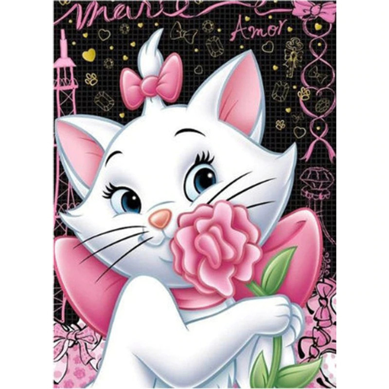 Cica virággal - Marie - Gyémánt képkirakó 50*60 cm