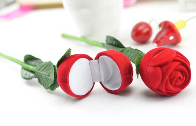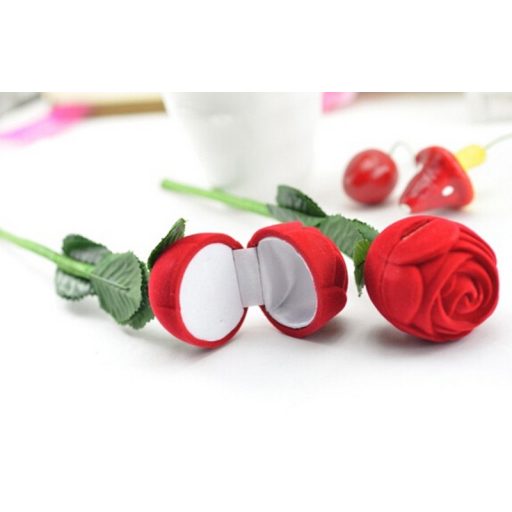 Díszdoboz rózsaszál alakú - bizsukhoz, ékszerekhez piros-zöld színben