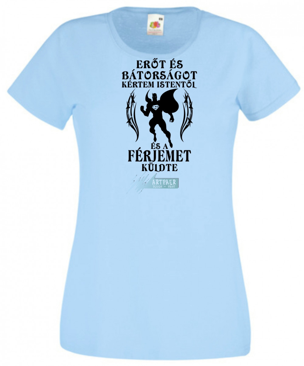 Erőt és Bátorságot kértem Istentől ... férjemet női rövid ujjú póló