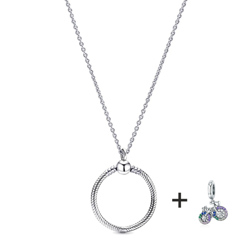 Ajándék, Charm, Ezüstözött, Kerékpározás, Love, Moments, Női ajándék, Nyaklánc, O medál, Pandora stílus