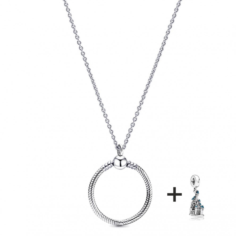 Ezüstözött nyaklánc pandora stílusú kastély charm medállal