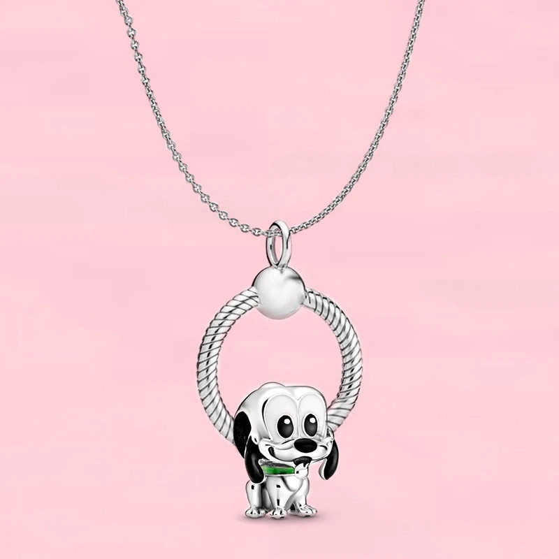 Ezüstözött nyaklánc pandora stílusú kutya, charm-os medállal