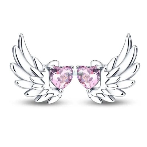 Fülbevaló 925 S ezüstözött angyalszárny mintás szív kristállyal (1 pár)