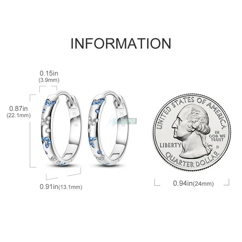 Fülbevaló 925 S ezüstözött karika pillangó mintás kristályokkal (1 pár)