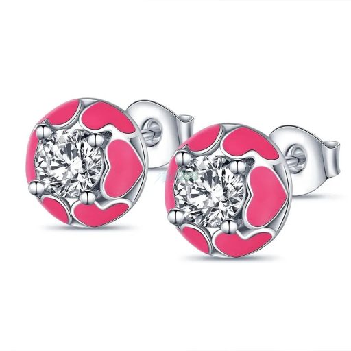 Fülbevaló 925 S ezüstözött piros szív mintás átlátszó kristállyal (1 pár)