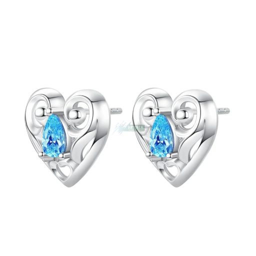 Fülbevaló 925 S ezüstözött szív mintás kék csepp alakú kristállyal (1 pár)