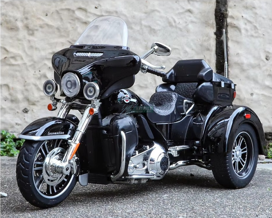 Harley-Davidson Trike Motormodell 1:9 méret - fekete, rajongóknak, gyüjtőknek