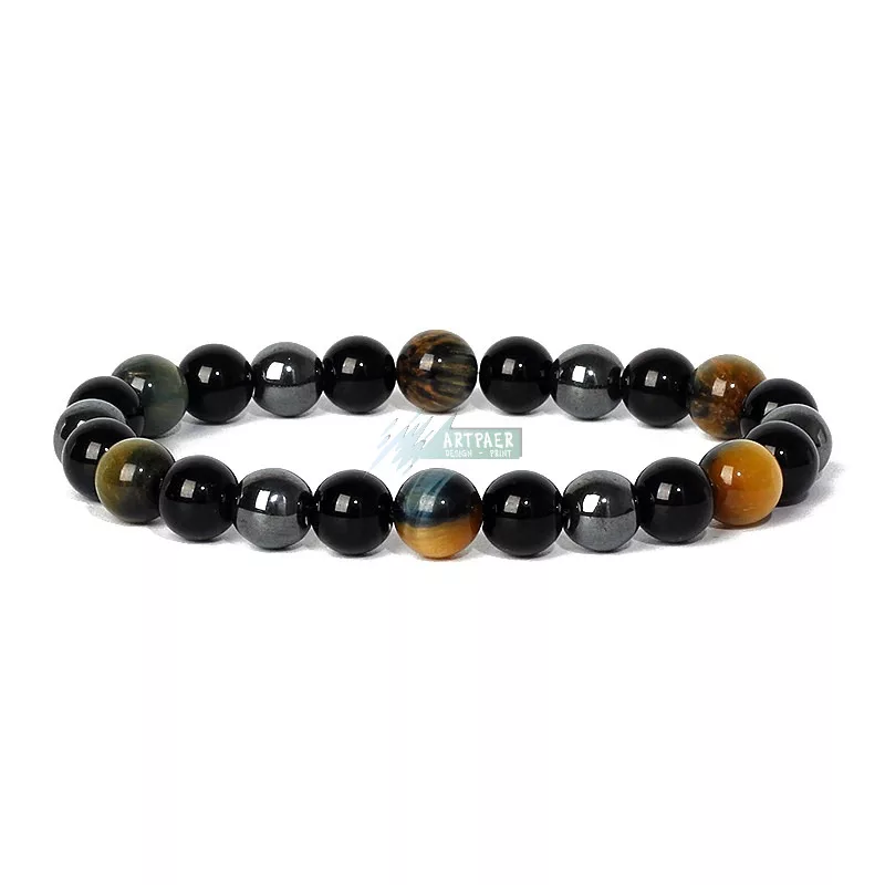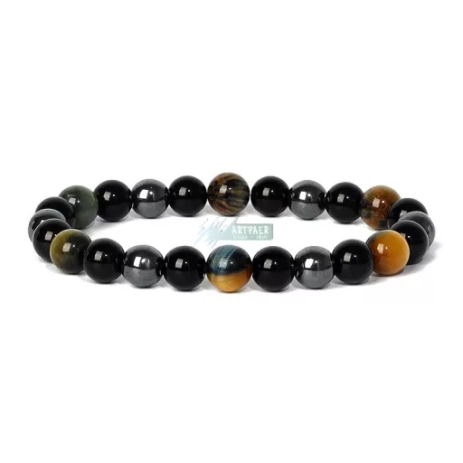 Hármas védelem - ásvány karkötő ónix - hematit - álom tigrisszem