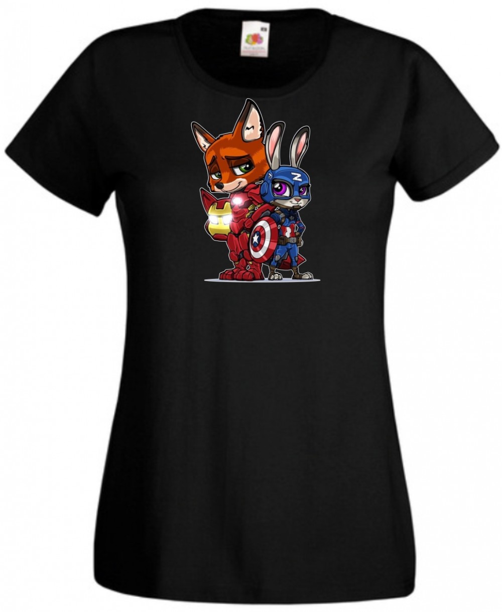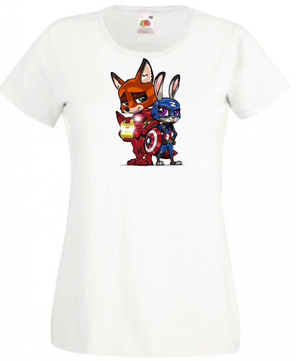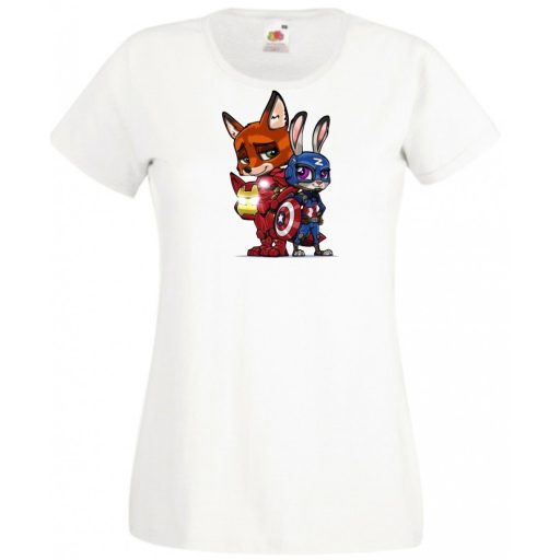 Humor kicsi Hősök Róka és a nyúl (Vasember és Amerika kapitány) női rövid ujjú póló