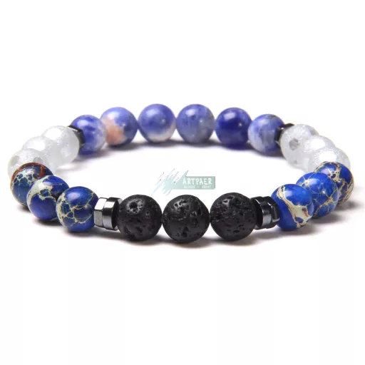 Imperiál jápis - lávakő - hematit - szodalit - kristály üveg - ásvány karkötő