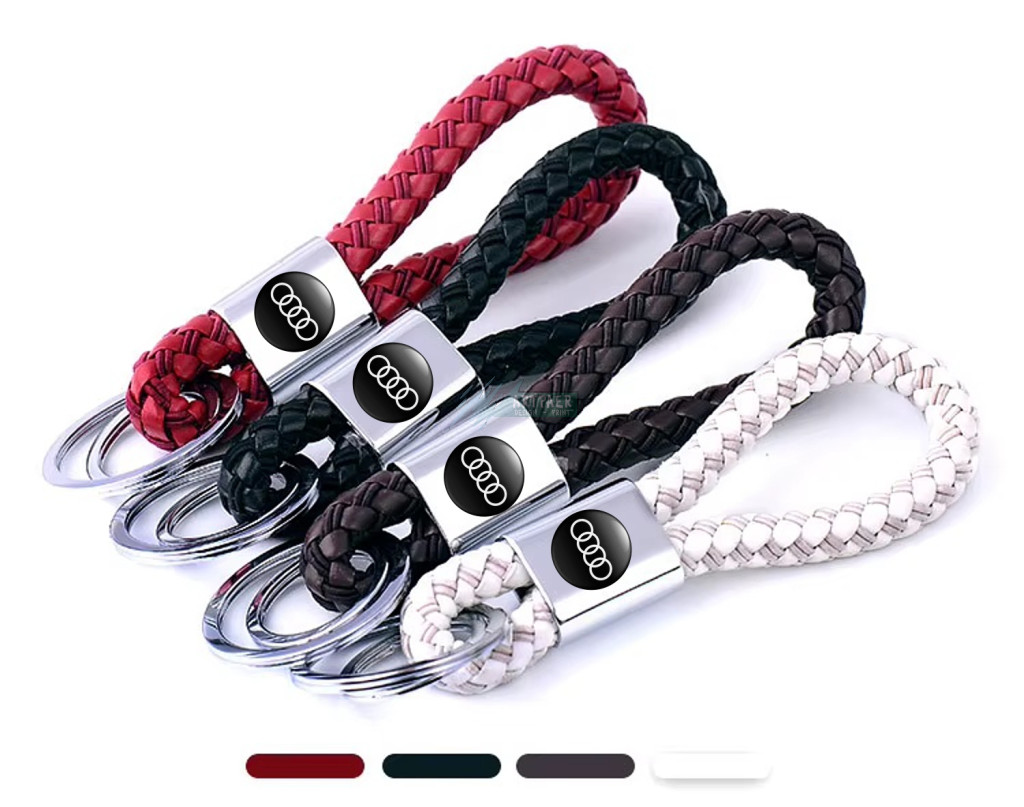 Kulcstartó, távirányító tartó Audi fonott bőr, különböző színű, dupla karikával.