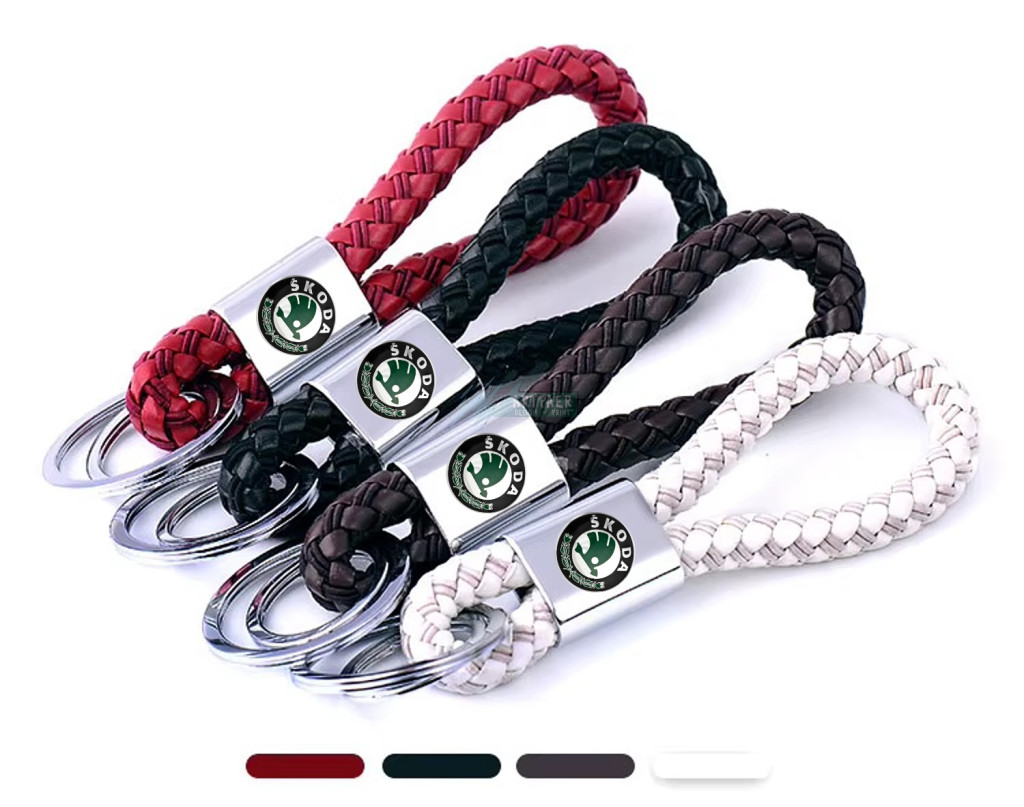Kulcstartó, távirányító tartó Skoda fonott bőr dupla karikával.