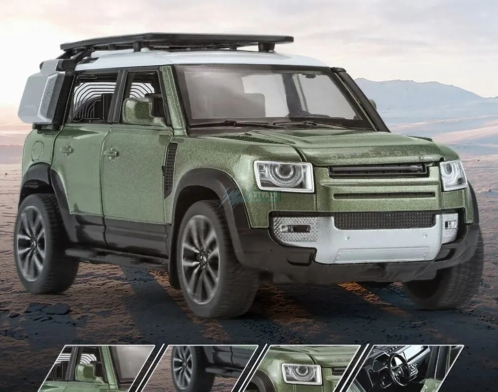 A Land Rover - Defender 1:32 méretarányú motormodell mely részletes kidolgozással készült fémből és műanyagból gyűjtők számára.