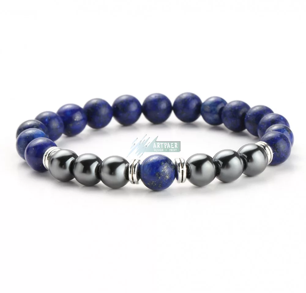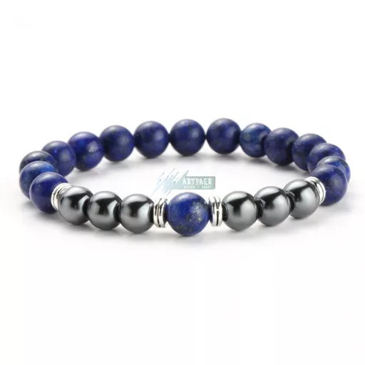 Lápisz lazuli - hematit, ezüst köztes ásvány karkötő