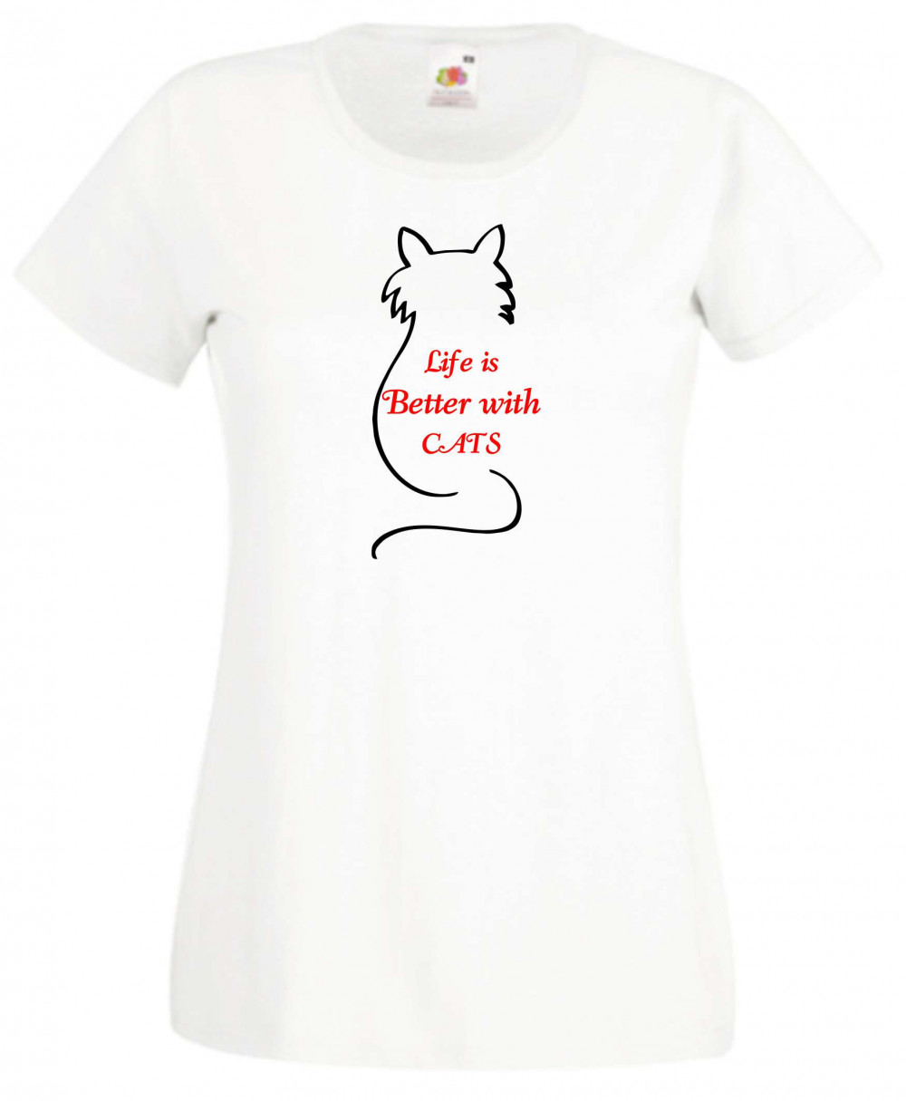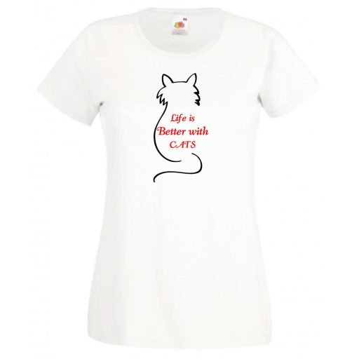 Life is better..., az élet jobb... cicás női rövid ujjú póló