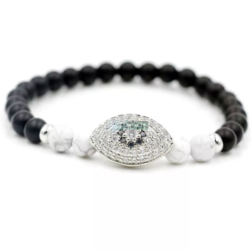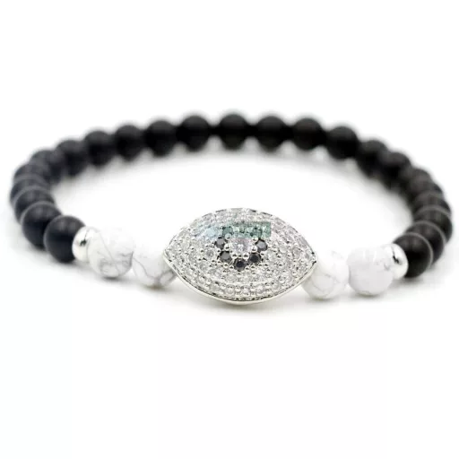 Mindent látó ezüst szemes ásvány karkötő Howlit - Onyx
