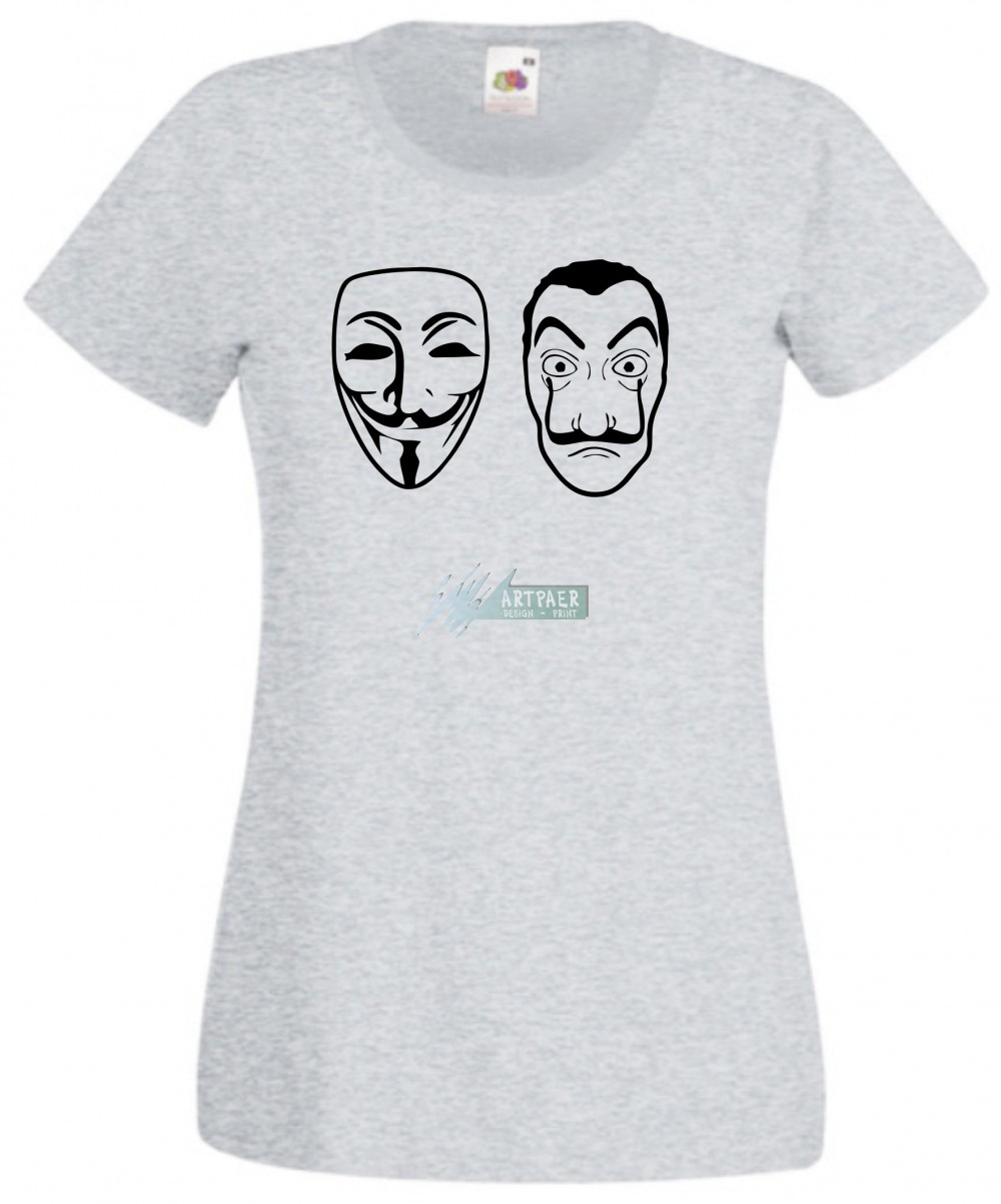 Money Heist, Dali és Anonymus maszk női rövid ujjú póló