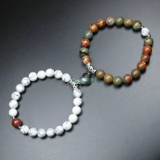 Páros ásvány karkötő mágneses szív - Picasso jáspis - howlit