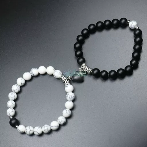 Páros ásvány karkötő mágneses szív - ónix - howlit