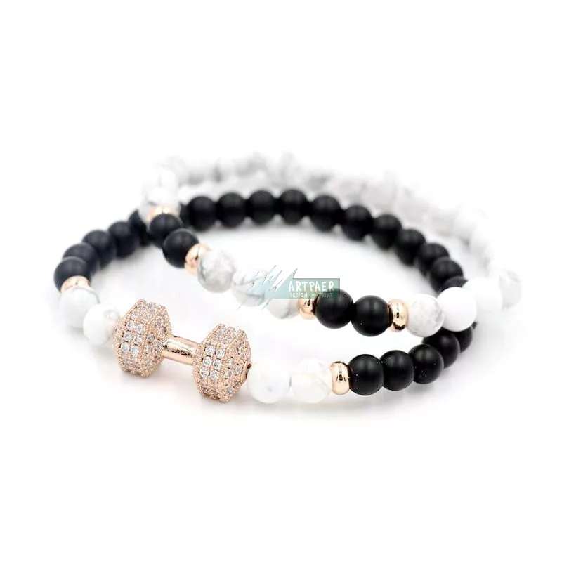 Fitt ásvány karkötő ónix - howlit - rózsa aranyszín cirkónium kristályos súlyzós szett