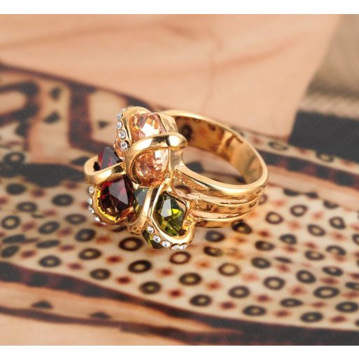 Látványos, színes kristályokkal díszített nagy mintájú gyűrű.