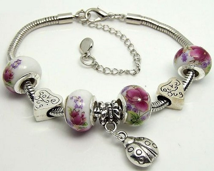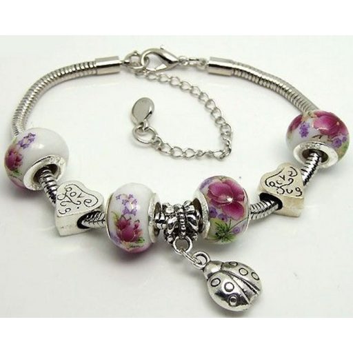 Beads, Bogyó, Charm, Fém, Fityegő, Katica, Love, Mintázott, Pandora stílus, Porcelán, Rugalmas, Szív, Virág