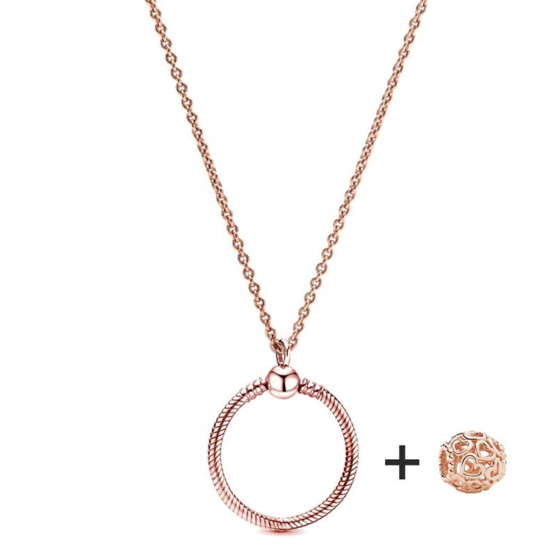 Ajándék, Charm, Moments, Női ajándék, Nyaklánc, O medál, Pandora stílus, Rózsaaranyozott