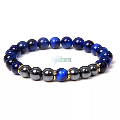 Sötétkék tigrisszem - hematit arany köztes ásvány karkötő