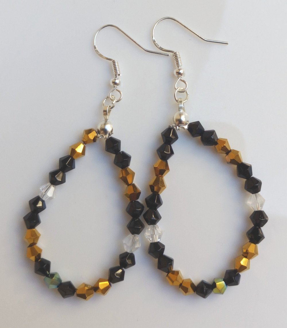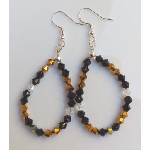 Színjátszó bicone arany-fekete kristályüveg fülbevaló ezüst színű akasztóval (1 pár)