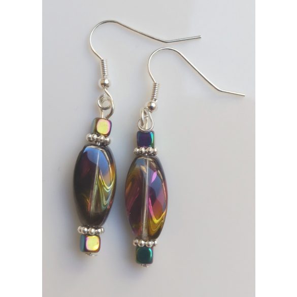 Színjátszó bordó színű üvegkristály fülbevaló ezüst színű akasztóval (1 pár)
